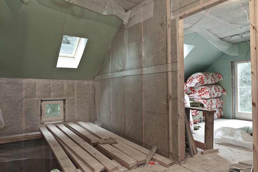 Грамотная теплоизоляция – ключевой способ сокращения теплопотерь в энергоэффективном коттедже. Для «Энергодома» выбраны материалы из каменной ваты РОКВУЛ. Установленные в деревянный каркас здания, они обеспечивают оптимальные тепло- и звукозащитные характеристики. Для наружных стен выбран утеплитель толщиной 250 мм, а для кровли – 300 мм. Внутренние перегородки дома также тепло- и звукоизолированы. Комплексная теплоизоляция здания каменной ватой обеспечила низкие теплопотери, эффективную звукоизоляцию, пожарную безопасность и комфортный микроклимат.