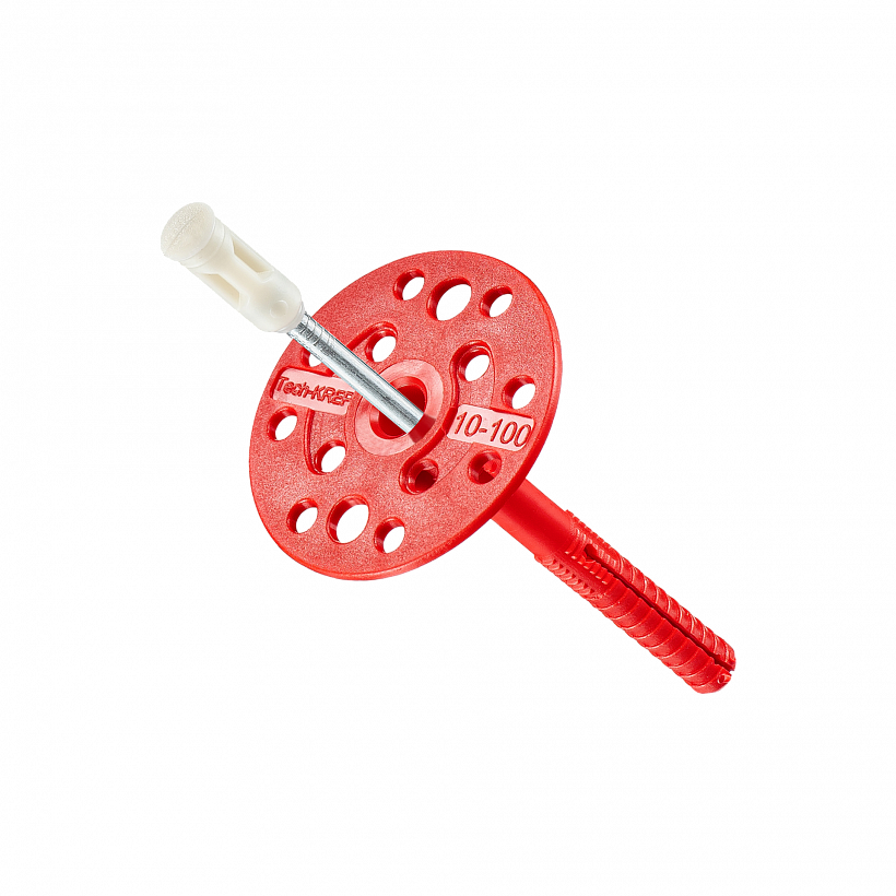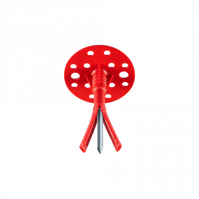 Наличие термоголовки на шляпке гвоздя защищает штукатурные фасады от возникновения конденсата, из-за перепада температур и последующего их разрушения от воздействия влаги. В среднем на 1 кв. м площади теплоизоляции применяется 5-6 дюбелей.